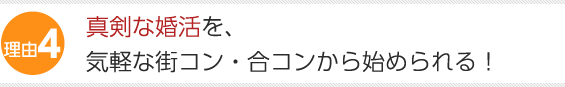 「婚活は初めてだから、まずは気軽な合コンや街コンから始めてみよう!」 そう思う人も少なくないはず。ですが、残念なことに一般的な合コンや街コンは、真剣な婚活には全く向いていません。 理由は以下の通り。