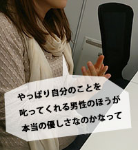 - 私はそうですね、優しい人というのはもちろんありますね。ただなんだろう、その29歳のときに振られた彼氏も優しい人ではあったんですけど、なんでしょうね。表面的な優しさっていうか。やっぱりなんか自分のことを叱ってくれる男性のほうが逆に真に優しいのかなっていうふうには思って。